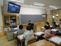 2月28日(火)千厩町磐清水にある安楽寺の佐藤住職が来校し、全校児童を対象にリモートで「菅 秀才」の漫画贈呈式が行われました。また、併せて歴史講演会が行われました。講演会では、①安楽寺とは…②天満宮とは…③菅秀才とは…菅原道真公と菅秀才について、写真や漫画の挿絵を示しながら分かりやすく説明していただきました。子どもたちは、興味津々で画像を観たり佐藤住職のお話を聞くことで磐清水の歴史についての理解を深めました。図書室に漫画が入ることも楽しみです。2023年4月15日(土)には、1100年大祭が行われます。ぜひ安楽寺に行き、1100年の物語を感じてみませんか。