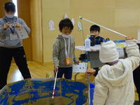 11月17日(木)一関清明支援学校千厩分教室(ハピきら)の児童と千厩小あおぞら学級の児童との交流会「ハピあお交流」が行われました。今回は「秋祭り」と称して「ボーリング」「まと当て」「キャタピラ」「魚釣り」「輪投げ」「おもちゃ」などの6つのお店が出され、お店屋さんになったりお客さんになったりしながら、みんな笑顔いっぱい楽しく交流することができました。この「ハピあお交流」は毎年7回程度行っており、今回の交流は4回目です。この他にも学年ごとに一緒に行事や校外学習に参加するなど、積極的にかかわり合いながら活動しています。同じ校舎で生活していることから、スムーズに行うことができ、充実した交流会になっています。