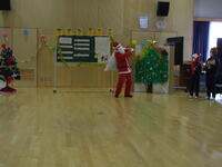 12月16日(金)にハピあおクリスマス会が行われました。かがやきホールは、ツリーや飾りでクリスマスムードに包まれました。そんな中で、あおぞら学級は楽器の演奏を交えたダンスの発表、ハピきらはハンドベルの演奏とダンスの発表、全員そろって「赤鼻のトナカイ♪」を合唱など、大いに盛り上がりました。そして最後は…やはり恒例のサンタさん参上!一人一人がプレゼントを受け取りました。みんなニッコリ笑顔でとてもうれしそうでした。今年のハピあおクリスマス会も楽しい思い出になりました。