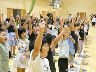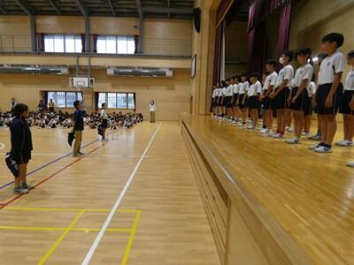 6月26日(水)は、一関地方小学校陸上記録会壮行会です。前日には、全校で陸上壮行会が行われました。今までの練習の成果を十分に発揮して選手の皆さんが最高のパフォーマンスをできるよう、全校の大きな声でエールを送りました。