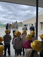 4月22日(火)に避難訓練がありました。火災を想定して全校で避難をしました。その後、6年生は消火体験を、5年生は煙体験をしました。