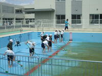 いよいよプール学習のシーズンになりました。5月31日と6月1日に恒例行事であるプール清掃が行われました。いいお天気、そして、暑くもなく寒くもなくちょうどよい気温の中、5年生と6年生がプールやプールサイドはもちろん、更衣室やトイレ、シャワー室等、丁寧に掃除をしました。今年度も一生懸命働く高学年の姿に感心しました。おかげでプール全体がピッカピカ!これから気持ちよく水泳学習をスタートさせることができそうです。