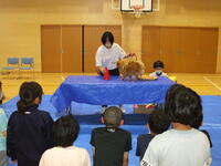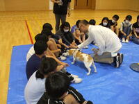 6月16日(金)5年生の総合的な学習の時間にゲストティーチャーをお招きして「福祉・ボランティア教育」を行いました。本日の内容は「動物と一緒に行う訪問活動・動物愛護」です。ポチの会のメンバー4名(本江さん(獣医)、伊勢さん、菅原さん、佐々木さん(しつけインストラクター)と2匹の犬も一緒に来校しました。動物介在療法(AAT)、動物介在活動(AAA)、動物介在教育(AAE)等について教えていただき、その後訓練されている2匹の犬とふれ合うことができました。